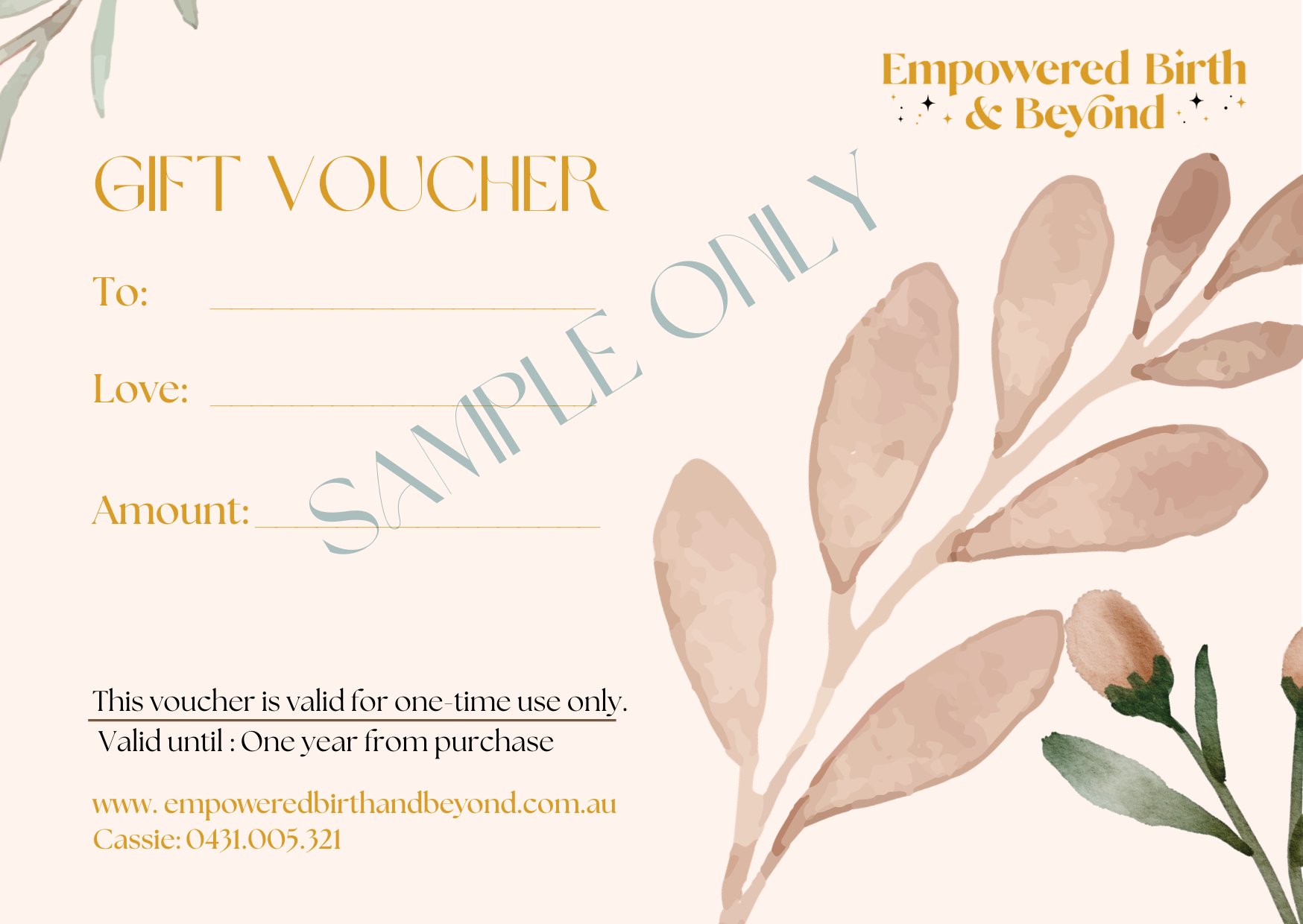 Gift certificates are available to be used towards Hypnobirthing courses ,Postpartum Packages & Fill Your Freezer Packages.